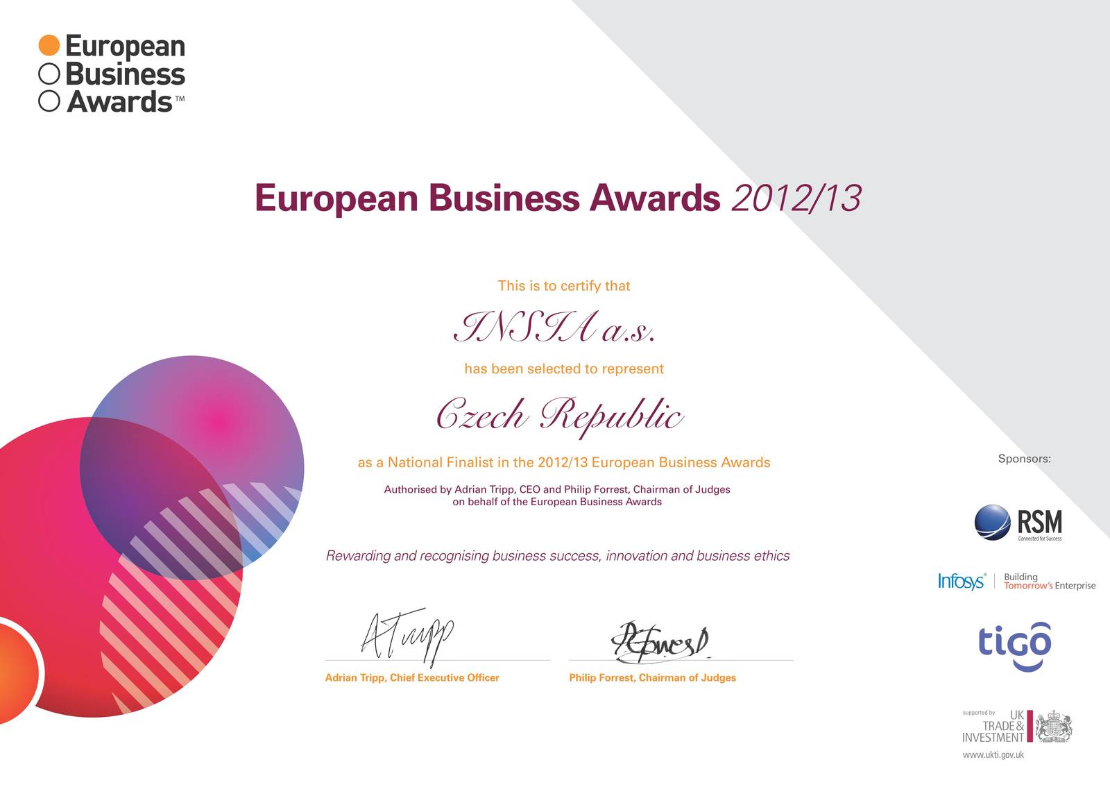 INSIA ako jediná z vyhodnotených českých firiem obhájila umiestnenie v rebríčku v rokoch 2006 - 2013 osemkrát v rade za sebou.