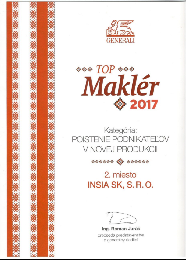 INSIA SK je jedným z troch TOP PARTNEROV, ktorých poistný kmeň v Komunálnej poisťovni presiahol 4 milióny Eur.