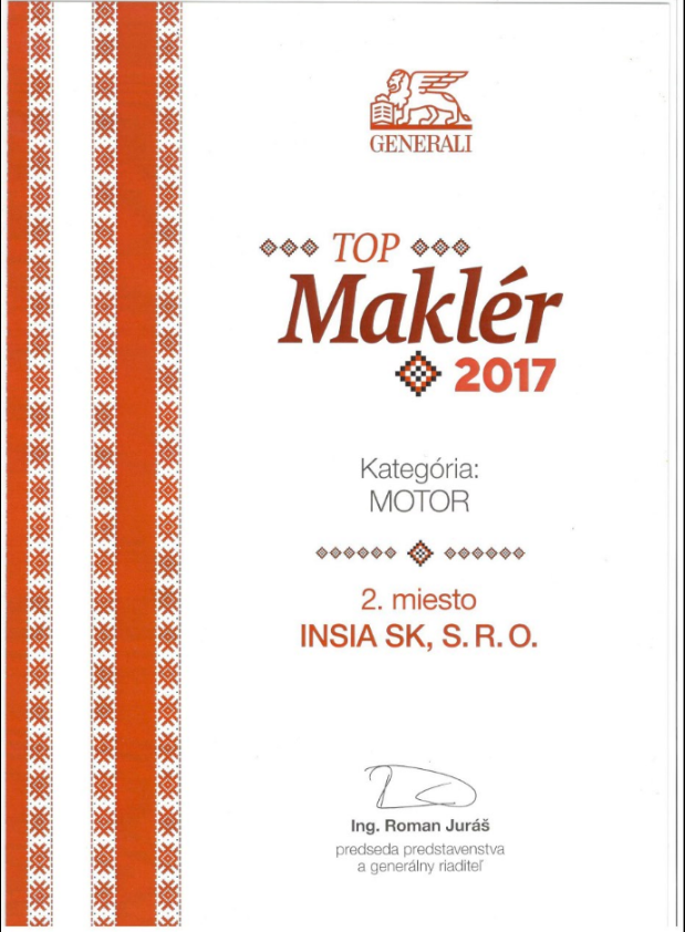 12. mája 2017 boli v ČR vyhlásené výsledky 17. ročníka prestížnej ankety Poisťovňa roku, ktorej súčasťou aj tento rok bola kategória Poisťovací maklér roku 2016.