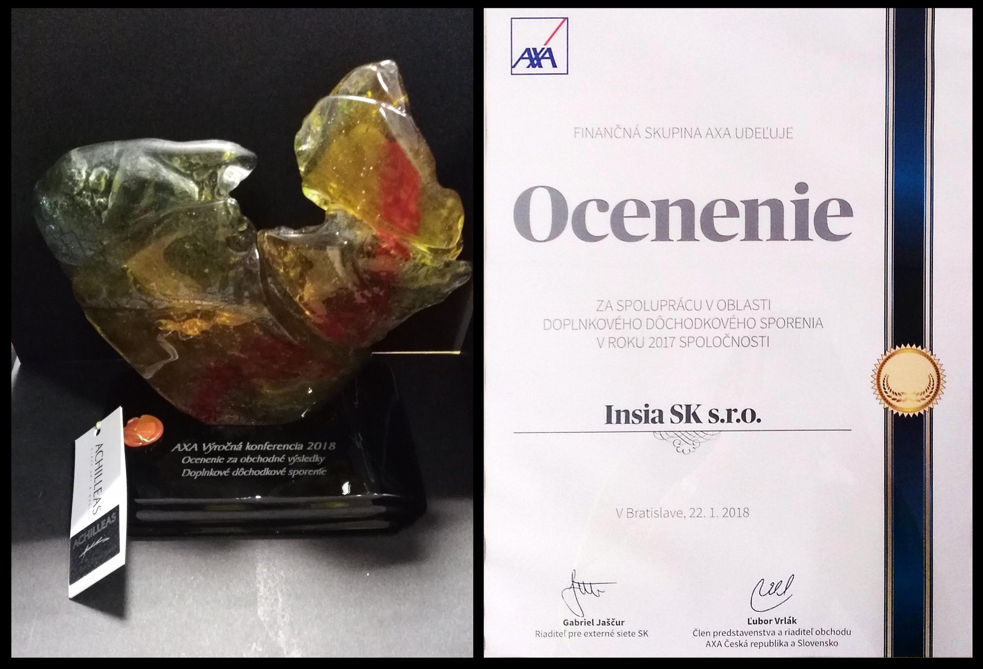 Za výborné produkčné výsledky dosiahnuté v roku 2019 v spoločnosti AXA, získala INSIA SK ocenenie v dvoch kategóriách.